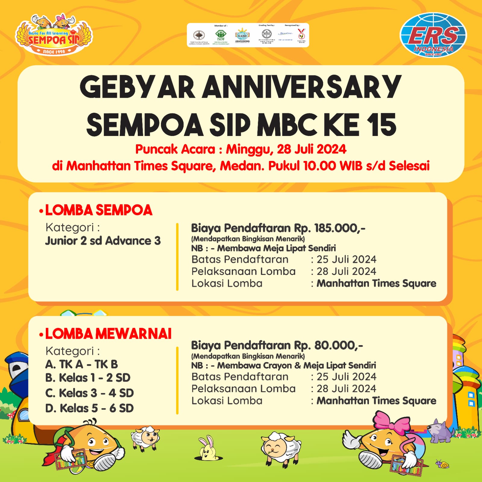 Manhattan Times Square bekerjasama dengan Sempoa SIP MBC mengadakan Gebyar Anniversary Sempoa SIP MBC ke-15.Yang diselenggarakan pada tanggal 28 Juli 2024 di Manhattan Times Square – L3. Acara ini sangat bagus dalam mengasah kemampuan dan bakat anak saat ini, ayoo saksikan keseruan Gebyar Anniversary Sempoa SIP MBC ke-15