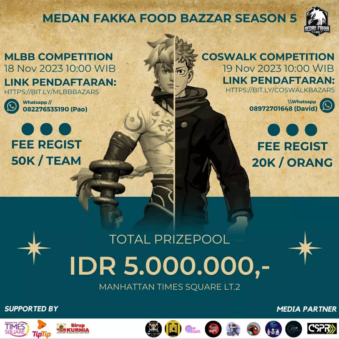 Manhattan Times Square bekerja sama dengan Medan Fakka mengadakan Medan Fakka Food Bazaar Season 5, yang diselenggarakan pada tanggal 18 – 19 November 2023 di L3. Acara ini terdiri dari beberapa rangkaian acara, seperti : Mobile Legend Competition, Coswalk Competition dan Food Bazaar. Ayo saksikan keseruan Medan Fakka Community Esports Presented di Manhattan Times Square – L3.