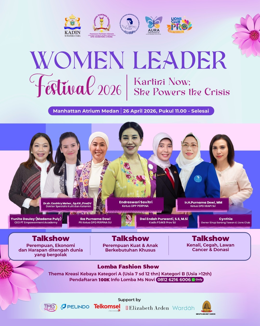 Manhattan Times Square bekerjasama PERPINA Sumatera Utara, IWAPI, Lions Club, Aura Indonesia dan didukung penuh oleh KADIN Sumatera Utara mengadakan event Women Leader Festival 2026 yang diselenggarakan pada tanggal 26 Mei 2026 di Atrium – Mall Manhattan Times Square. Eventnya sangat seru karena terdiri dari berbagai rangkaian acara, sepert: Lomba Fshion Show & Talkshow. Ayoo saksikan keseruan event Women Leader Festival 2026.