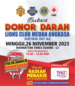 Manhattan Times Square bekerjasama dengan Lions Club Medan Angkasa Distri 307 A2 mengadakan Bakti Sosial Donor Darah, yang diselenggarakan pada tanggal 26 November 2023 di L3. Acara ini sangat bagus dalam menjaga kesehatan tubuh dan memberikan manfaat baik bagi tubuh. Ayo datang di acara Baksos Donor Darah Lions Club Medan Angkasa Distrik 307 A2 di Manhattan Times Square – L3.