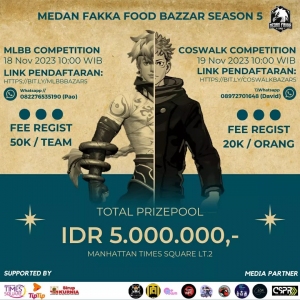 Manhattan Times Square bekerja sama dengan Medan Fakka mengadakan Medan Fakka Food Bazaar Season 5, yang diselenggarakan pada tanggal 18 - 19 November 2023 di L3. Acara ini terdiri dari beberapa rangkaian acara, seperti : Mobile Legend Competition, Coswalk Competition dan Food Bazaar. Ayo saksikan keseruan Medan Fakka Community Esports Presented di Manhattan Times Square – L3.