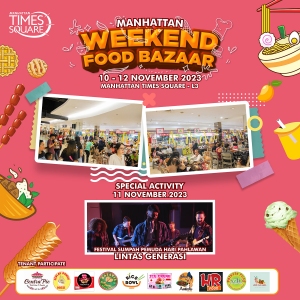 Manhattan Times Square mengadakan Manhattan Weekend Food Bazaar Vol.9, yang diselenggarakan pada tanggal 10 - 12 november 2023 di L3. Acara ini menampilkan event Festival Sumpah Pemuda Hari Pahlawan – Lintas Generasi pada tanggal 11 november 2023 di L2. Ayoo datang dan nikmati kuliner yang ada di Manhattan Weekend Food Bazaar di L3