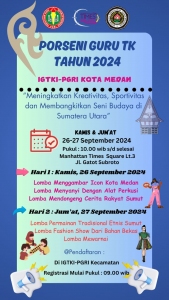 Manhattan Times Square bekerjasama dengan IGTKI-PGRI Kota Medan mengadakan event Porseni Guru TK Tahun 2024 yang diselenggarakan pada tanggal 26-27 September 2024 di Manhattan Times Square – L3. Eventnya sangat seru karena diisi dengan berbagai rangkaian acara seperti : Lomba menggambar, mewarnai, mendongeng, permainan tradisional dan fashion show. Ayoo saksikan keseruan event Porseni Guru TK Tahun 2024