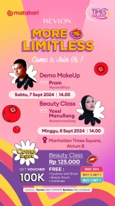 Manhattan Times Square bekerjasama dengan Matahari Dept.Store Manhattan mengadakan event Revlon More Is Limitless, yang diselenggarakan pada tanggal 7-8 September 2024 mulai pukul 14.00 WIB di Atrium B – Mall Manhattan Times Square. Acara ini sangat bagus dan menarik karena diadakan selama 2 hari, di hari pertama akan ada demo make up bersama Pram (@pramdhitya) dan di hari kedua Beauty Class bersama Yossi Manullang (@yossimanullang) Ayoo saksikan keseruan Revlon More Is Limitless di Mall Manhattan Times Square….