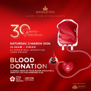 Manhattan Times Square bersama SAP7A Properti bekerjasama dengan UDD PMI Kota Medan mengadakan Bakti Sosial Donor Darah, yang diselenggarakan pada tanggal 02 Maret 2024 di Atrium-GF. Acara ini sangat bagus dalam menjaga kesehatan tubuh dan memberikan manfaat baik bagi tubuh. Ayo datang di acara Baksos Donor Darah di Manhattan Times Square – GF.