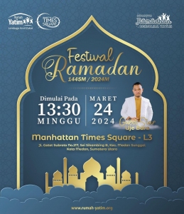 Manhattan Times Square bekerjasama dengan Rumah Yatim mengadakan Festival Ramadhan .Yang diselenggarakan pada tanggal 24 Maret 2024 mulai pukul 13.30 WIB di Manhattan Times Square L3. Acara ini terdiri dari dua lomba, lomba fashion dan lomba nyanyi lagu Islami. Acara ini sangat bagus dalam mengasah kemampuan dan bakat anak, ayoo saksikan keseruan Festival Ramadhan